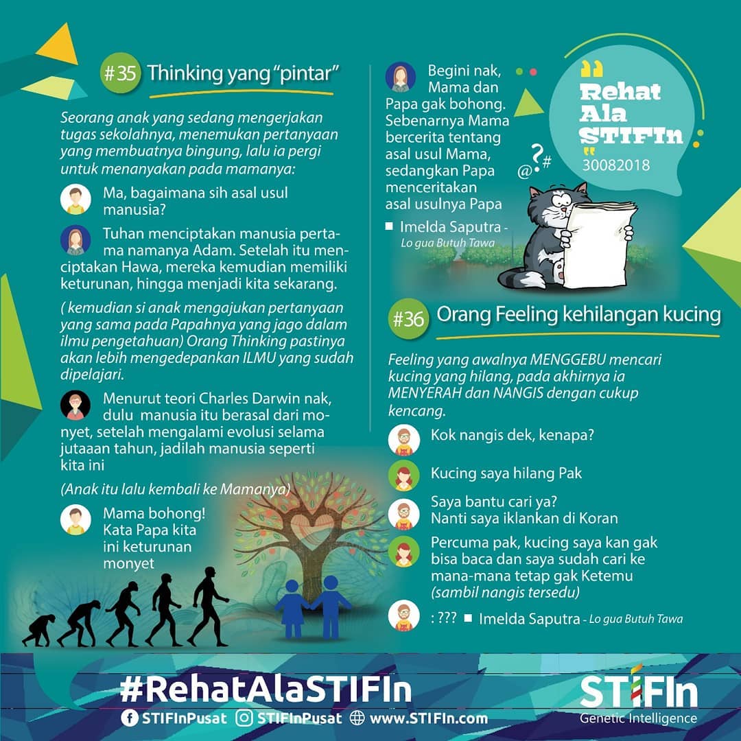 - STIFIn, -- Sensing, -- Thinking, --- Intuiting, ---- Feeling, ---- Insting Yuk kenalan sama STIFIn! Sensing, Thinking, Intuiting, Feeling, dan Insting, Kepribadianmu yang mana? Posted by tesstifin.id - Apa itu STIFIn? Tak kenal maka tak tahu. STIFIn merupakan singkatan dari Sensing, Thinking, Int... Continue reading