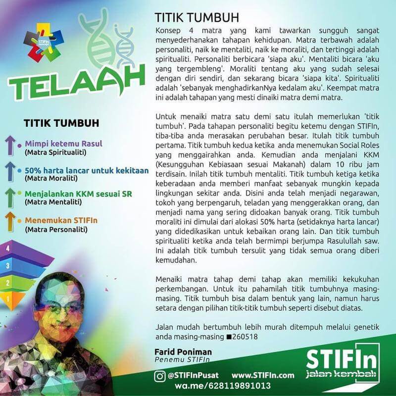 - Pada tahapan personaliti begitu ketemu dengan STIFIn, tiba-tiba anda merasakan perubahan besar. Itulah titik tumbuh pertama.